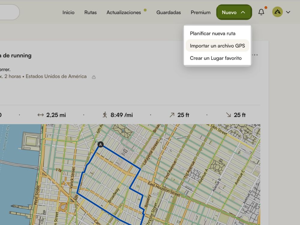 3. Elige Archivo, luego selecciona tu archivo GPX de SimuRun.