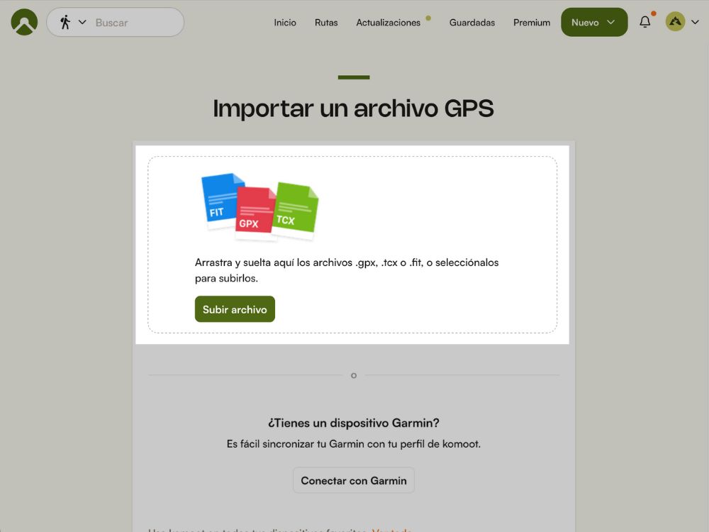 3. Arrastra tu archivo GPX a la zona indicada o haz clic en Examinar.