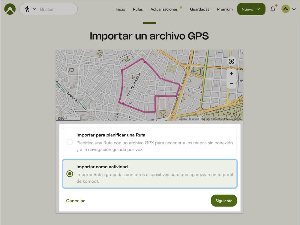 👉 El formato GPX es universal: puedes importarlo en cualquier aplicación deportiva que acepte este tipo de archivo.